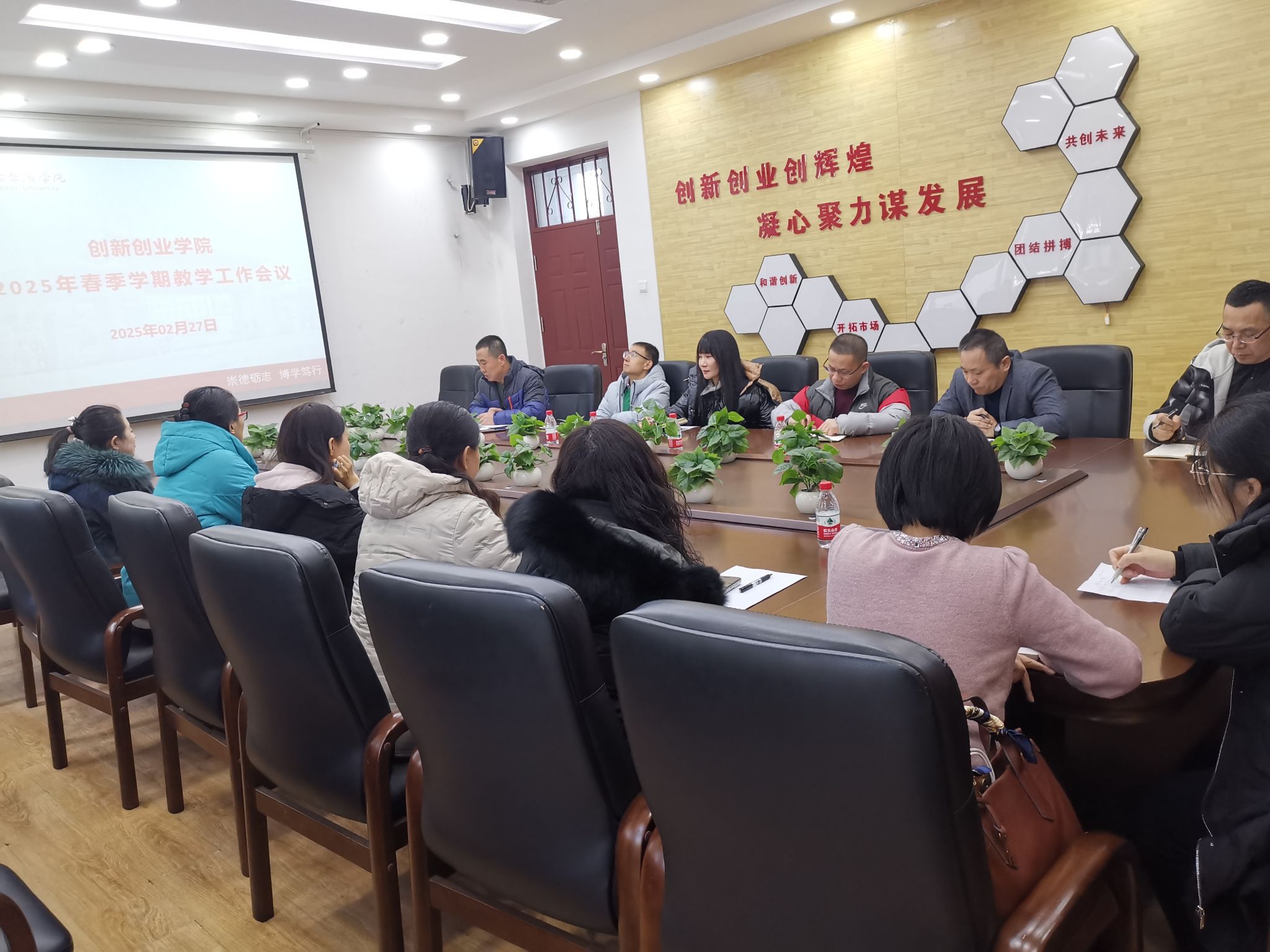 (文/李健) 2月27日下午,创新创业学院在大学生创业园106会议室召开2025年春季学期教学工作会议,部署2025年春季学期教学科研等相关工作。《大学生创新创业导论》课程全体任课教师参会,会议由创新创业学院院长黄丽丽主持。