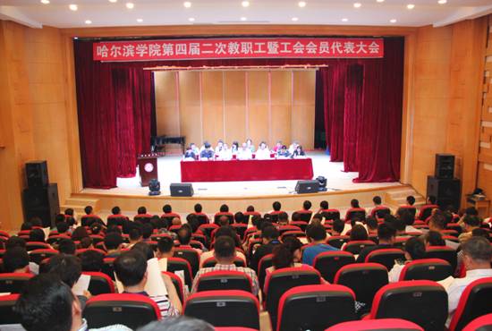 在全党深入学习贯彻党的十八届四中全会精神,扎实推进“三严三实”教育活动之际,哈尔滨学院第四届二次教职工暨工会会员代表大会于2015年6月10日下午在我校艺术与设计学院音乐厅胜利召开。大会由校党委书记孙列兵主持,校长胡永昌,校党委副书记、校工会主席王利民,副校长樊千,副校长王骞分别作了《哈尔滨学院工作报告》、《哈尔滨学院工会工作报告》、《哈尔滨学院财务工作报告》和《哈尔滨学院章程》(草案)起草说明。学校教职工代表130人,列席代表41人,特邀代表3人参加了会议。会议期间各位代表对大会议题进行了认真热烈的讨论,提出了许多宝贵意见,大会圆满完成了会议的各项议程。