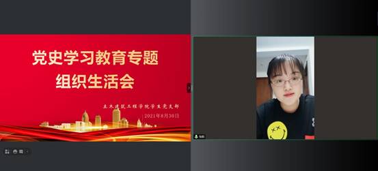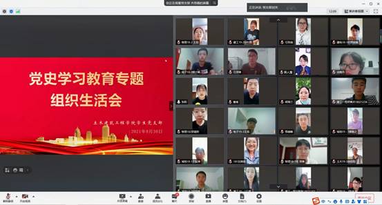 电子系党支部于8月30日召开线上党史学习教育专题组织生活会。电子系党支部书记车畅首先总结了2021上半年党史学习教育情况,剖析了存在的问题,明确了今后努力的方向。随后党员结合学习党史经历和体会,说收获,查不足,开展批评与自我批评。