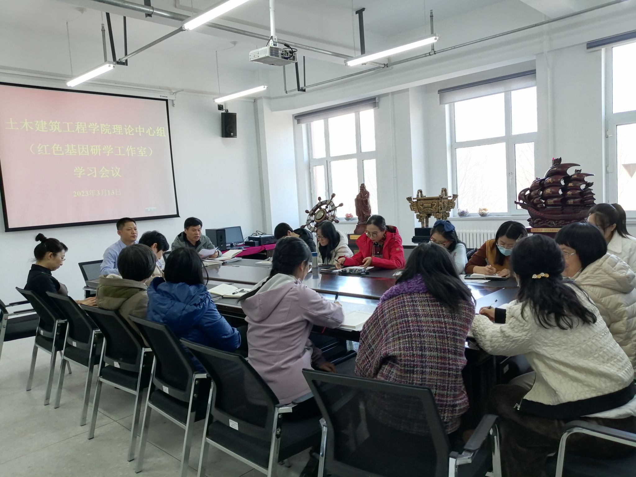 3月13日,土木建筑工程学院理论中心组(红色基因研学工作室)成员在实训楼509会议室召开中心组学习会。会议由党委书记刘刚主持并负责领学。