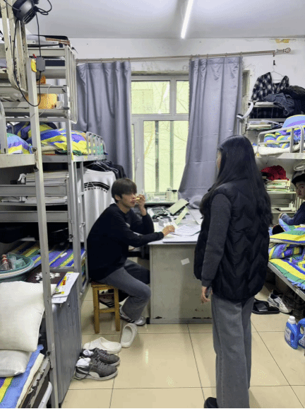 本次检查秉持“全覆盖、零容忍、重实效”的原则,围绕宿舍用电安全、违规电器使用、消防设施配备、环境卫生状况等关键环节,开展了地毯式排查。辅导员深入每一间学生宿舍,仔细查看用电线路是否存在老化破损,插排使用是否规范。在检查过程中,辅导员与学生亲切交谈,详细了解同学们的学习和生活状况,着重强调“安全无小事”的理念,并提示同学们务必增强安全防范意识,严格遵守校规校纪。