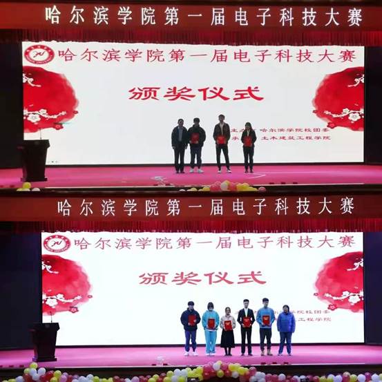 11月12日晚18时,由校团委主办,土木建筑工程学院承办的“哈尔滨学院第一届电子科技大赛”在图书馆报告厅隆重举行。校长胡宝忠、校党委副书记张鸿雁、团委书记于迪、科技处负责人孙路、土木建筑工程学院院长陶成云、副院长罗秋滨、团委副书记路今钊、学生处副处长庞哲来到比赛现场观摩比赛。本次大赛秉承公平公正公开原则,前期经过初赛、复赛,各路选手一路拼杀,最终有14支代表队突出重围进入决赛。决赛中,14支代表队按排序依次上台演示,讲解作品最精彩的地方。比赛最后评委老师从创新性,实用性,工艺性等方面对全部参赛作品进行点评,同时结合电子产品未来发展与供求关系进行现场指导。最终,产生一等奖两名,二等奖三名,三等奖五名,优秀奖四名。