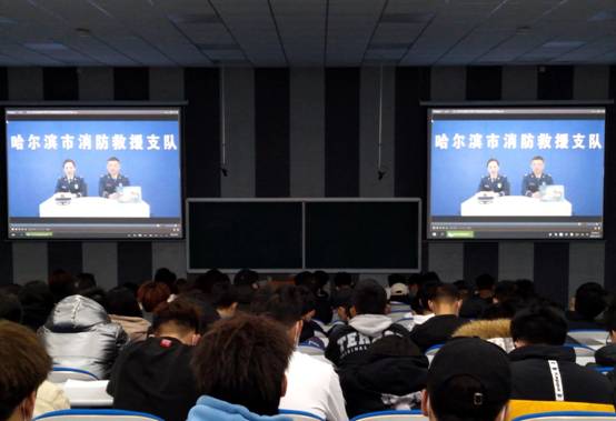 安全知识讲座首先播放了《哈尔滨学院春季学期开学复课消防安全知识》视频,视频列举了“北京交通大学实验室起火事件”案例,使同学们直观认识火灾事故频发原因、危害性,以及预防措施,提醒每一名同学从自身做起,严防火灾。胡老师对此做了进一步强调,告诫同学们水火无情,谨慎为之,切记火灾危害,学习掌握相关消防安全知识,保证生命财产安全。