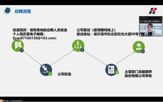 (文/艾冠霖)2022年10月12号下午16:00,龙建路桥第一工程公司来土木建筑工程学院召开线上专场招聘会。龙建一公司招聘主管郑选坤、毕业生辅导员艾冠霖及2023届毕业生参会。