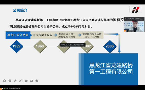 会议开始,郑主管播放了视频宣传片,对公司的规模、企业文化、福利待遇、未来规划、企业资质和现有产业结构等做了详细介绍。龙建路桥第一工程公司是国家认定高薪技术企业,曾获“鲁班奖”。省内项目有“郓城县城区道路政府和社会资本合作项目”“东明县公路建设政府和社会资本合作项目”和“西臧s5工程建设项目”。国外代表项目有“苏丹麦罗维大桥”“孟加拉布里干戈河中孟友谊公路大桥”。