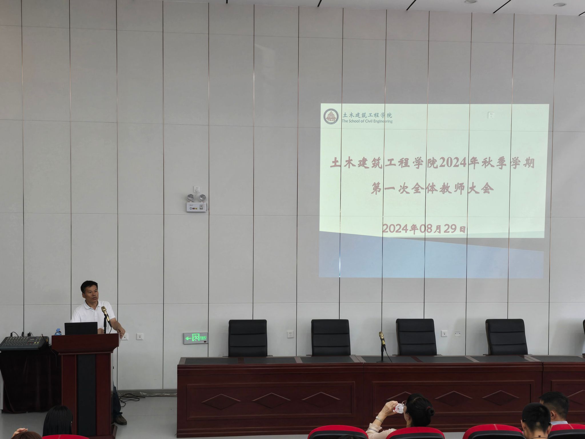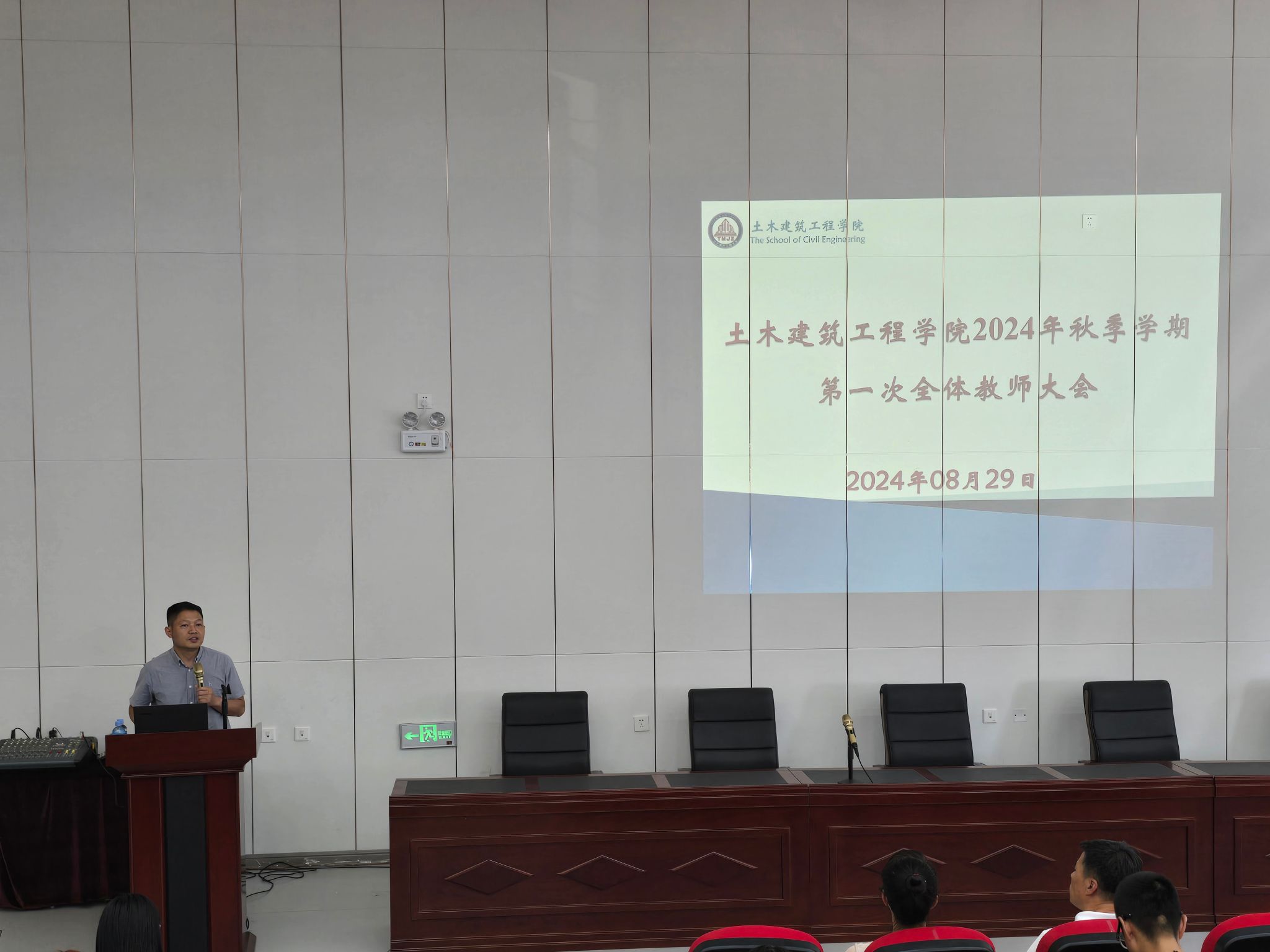 (文/张阳)8月29日下午,学院在A323报告厅召开2024秋季学期全体教职工大会,传达学校秋季学期中层干部会议精神,布置2024年秋季学期工作,学院全体教职工出席会议。会议由党委书记刘刚主持。