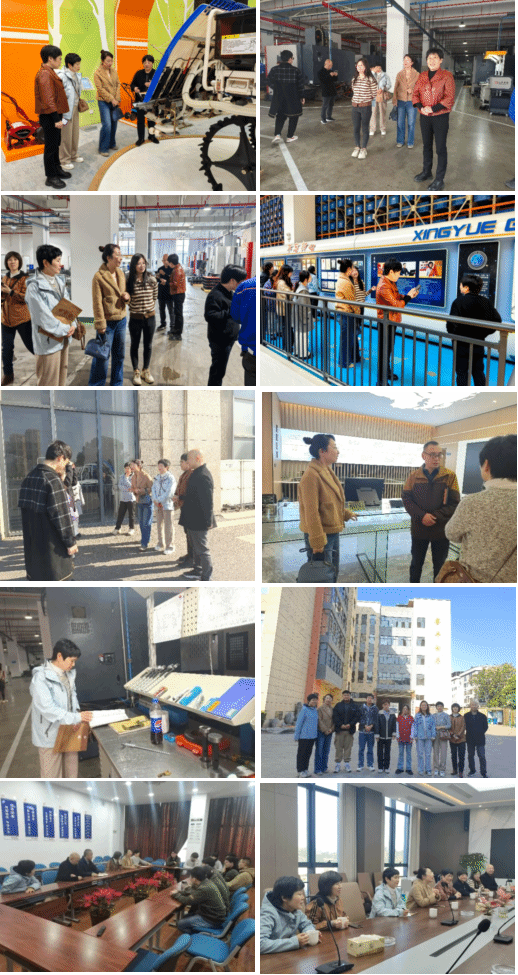在永康五金学院书记张美玉、主任程建敏及相关企业负责人的陪同下,我院先后走访了星月集团的星莱和南塘工业园、星莱和古山工业园、三锋实业股份有限公司、鉴丰电子科技有限公司、泊康科技股份有限公司、精拓科技股份有限公司。走访过程中参观了企业的研发中心、生产线及学生工作区,深入了解了企业最新的技术成果和项目案例。