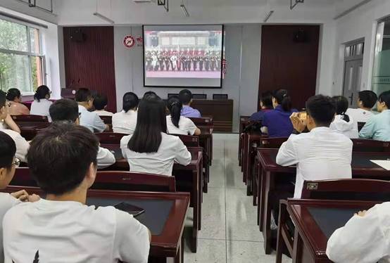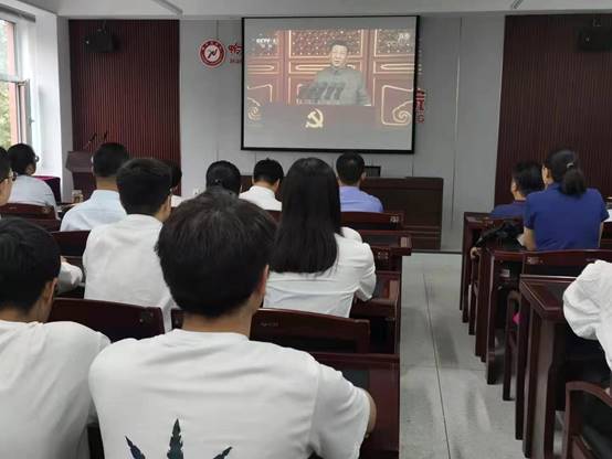 2021年7月1日,庆祝中国共产党成立100周年大会在北京天安门广场隆重举行。院长陶成云、党总支书记刘刚、副院长高春、各支部无课教师党员,以及无课学生党员、入党积极分子来到实训楼305会议室,集中观看庆祝中国共产党成立100周年大会盛况。