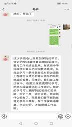 随后,张翠娜、宋玉宝、胡丹丹、贾贞、李威、陶成云、何延宏、高春、刘兴国、马跃等所有党员同志逐一发言,大家针对个人党史学习教育情况,讨论交流了心得体会,对照党史学习教育目标找差距讲不足,自觉检视问题,开展批评与自我批评。认为在党史学习教育过程中,形式比较多样,有参观、收听收看节目、个人学习、集体学习、讨论,不足之处是组织督促大家学习方面存在前紧后松,比如个人学习也存在不够系统、不够深入的问题。学以致用方面有所欠缺,特别是作为入党介绍人,对发展对象的培养,要体现在平时的课堂教育教学中,做到课堂思政润物无声。每名党员都充分认识到党史学习重要性和必要性,明确加强学习,做到用理论指导实践,促进工作。