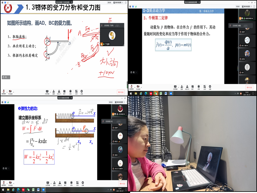 教学过程中,周雪妍深入浅出、认真批改作业、并时时进行答疑,常常工作到深夜。碰到个别突出问题,一对一在线进行学业指导。对于21届新生,周雪妍针对学生具体情况改编练习题,夯实学生基础。同时注重线上师生互动,启发式教学及问答,不但提升了学生的课堂参与度,还便于学生复习。在这特殊时期的教学中,她时刻关心学生的学习状态和生活情况,以学生为中心,育人与成才并举,过程与结果并重。