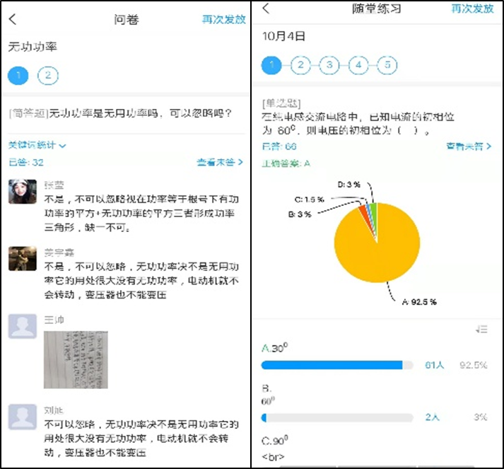 在线上教学中,杨冬霞老师与学生展开了良好的教学互动,进行了课堂问卷、随堂练习、主题讨论等教学内容,保证有质有量的完成教学任务。在接下来独处的日子里,杨老师的隔离点虽然离家并不远,但却时时刻刻的挂念着孩子,思念之情无以言表。但她仍克服困难,从不安、焦灼中转变为接受、平静面对,在“闭关期间”,通过对不断的自我学习,对如何设计高质量作业、教师备课要素、混合式教学应注重的问题等内容有了更高层的认识与理解,没有让这“无人打扰的日子”虚度。