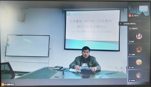 11月22日下午,土木建筑工程学院红色基因研学工作室召开线上专题学习会议,学习党的十九届六中全会审议通过的《中共中央关于党的百年奋斗重大成就和历史经验的决议》,学院党委成员、各支部书记参加学习研讨。专题学习由土木建筑工程学院党委书记刘刚主持。