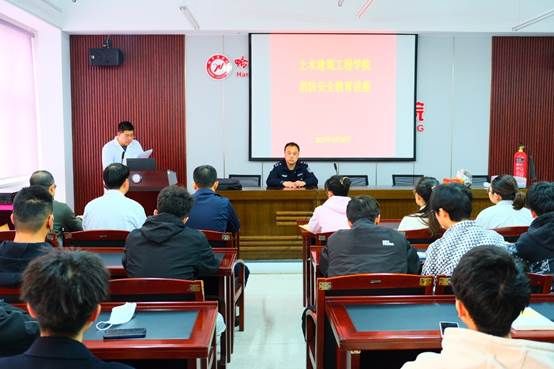 为贯彻落实省教育厅2023年实验室安全管理工作相关部署,进一步规范教学相关人员安全管理行为、提高教师及学生的消防安全意识、提升消防安全事故处置能力,土木建筑工程学院邀请校保卫处防火科刘震对我院师生开展了消防安全教育讲座,陶成云院长以及各专业教师代表参加了本次讲座。