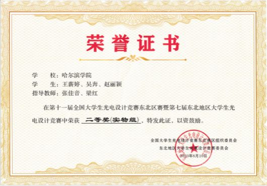 此前于8月7日至9日在长春理工大学举行的第十一届全国大学生光电设计竞赛东北区赛暨第七届东北地区大学生光电设计竞赛,我校物理学专业学生取得优异成绩。比赛自4月启动以来,吸引了来自东北赛区的哈尔滨工业大学、大连理工大学、吉林大学、东北大学、哈尔滨工程大学、东北师范大学、哈尔滨理工大学、哈尔滨师范大学等在内的49所高校、1056支队伍参加比赛。经过激烈角逐,我校物理学专业学生获得一等奖2项,二等奖5项,黑龙江省赛一等奖7项,二等奖9项。其中杨佳翼、陈鑫、陈明远、全辛茹、徐子君获得创意类赛题一等奖、路演铜奖,王薪婷、吴奔、赵丽颖获得“酒精浓度的非接触测量”赛题二等奖,王智强、吴佳琦、段政获得创意类赛题二等奖,杨梓鑫、郭思琦、徐星宇获得创意类赛题二等奖,苗云、安梦茹、王骞艺、史佳慧、魏宇航获得创意类赛题二等奖,李永春、王可盈、姜瀚获得创意类赛题二等奖。刘媛媛、梁红、张佳音、姜珊四位老师获得东北区赛优秀指导教师称号。