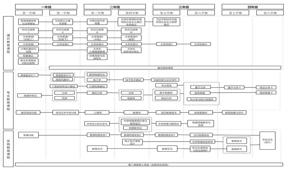 教育核心课程:物理教学论、中学物理课程标准与教学设计、教育学、心理学、现代教育技术等。