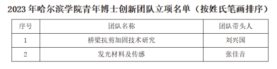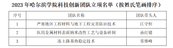 我院以江守恒、孙红镱、常继峰为带头人“科技创新团队”和刘兴国、张佳音领衔的“青年博士创新团队”,共5个团队获批哈尔滨“首批科技创新团队和青年博士创新团队”立项建设团队。