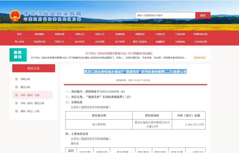 “固废变砂”系列标准研编项目是根据时任省长王文涛在省总河湖长会议上提出的进行“固废变砂”技术工艺研究的要求和《黑龙江省人民政府办公厅关于推进“固废变砂”建设工程应用的指导意见》(黑政办发〔2020〕9 号),我院江守恒科研团队对我省不同地区母岩采石尾矿机制砂、不同矿区铁尾矿烧结砂、粉煤灰烧结砂及建筑垃圾再生砂进行系列关键性能、测试技术与其在严寒地区混凝土、砂浆中的应用技术进行研究,确定“固废变砂”系列标准规范编制所必须的性能参数、检验方法、验收方法与应用技术。