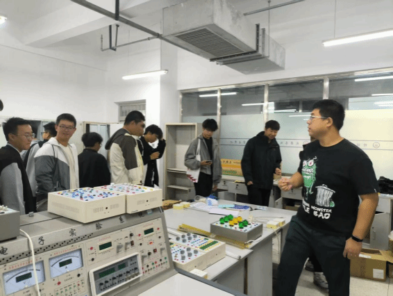 随后,智能与建筑工程学院实验中心的李伟卓和陈丽颖两位老师带领新生参观了电力电子及电机拖动联合实验室、自动控制原理实验室、新能源发电实验室。新生们看着实验设备和器材,纷纷好奇的老师提问能做什么实验,什么时候可以来做实验。李伟卓和陈丽颖两位老师耐心的一一回答,并鼓励同学们认真学好理论知识,培养独立完成实验的动手能力。