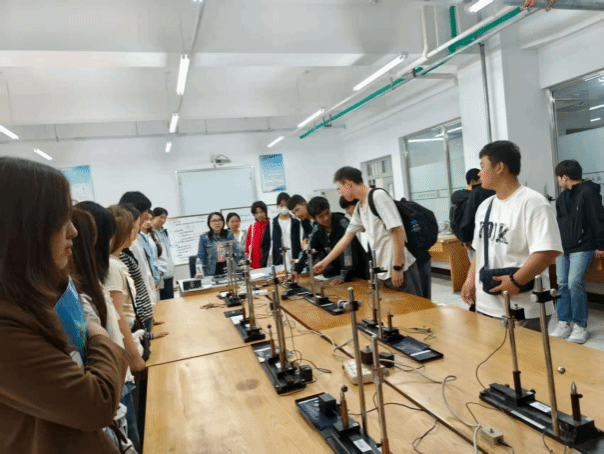 参观过程中,教师们结合实验原理进行讲解,通过老师们的现场演示和案例分析,使抽象的物理知识转化为可操作的实践体验,新同学通过与教师、学长交流,亲身操作体验,感受到理论与实践的紧密联系,增强对专业的认同感,从而提升学习动力。