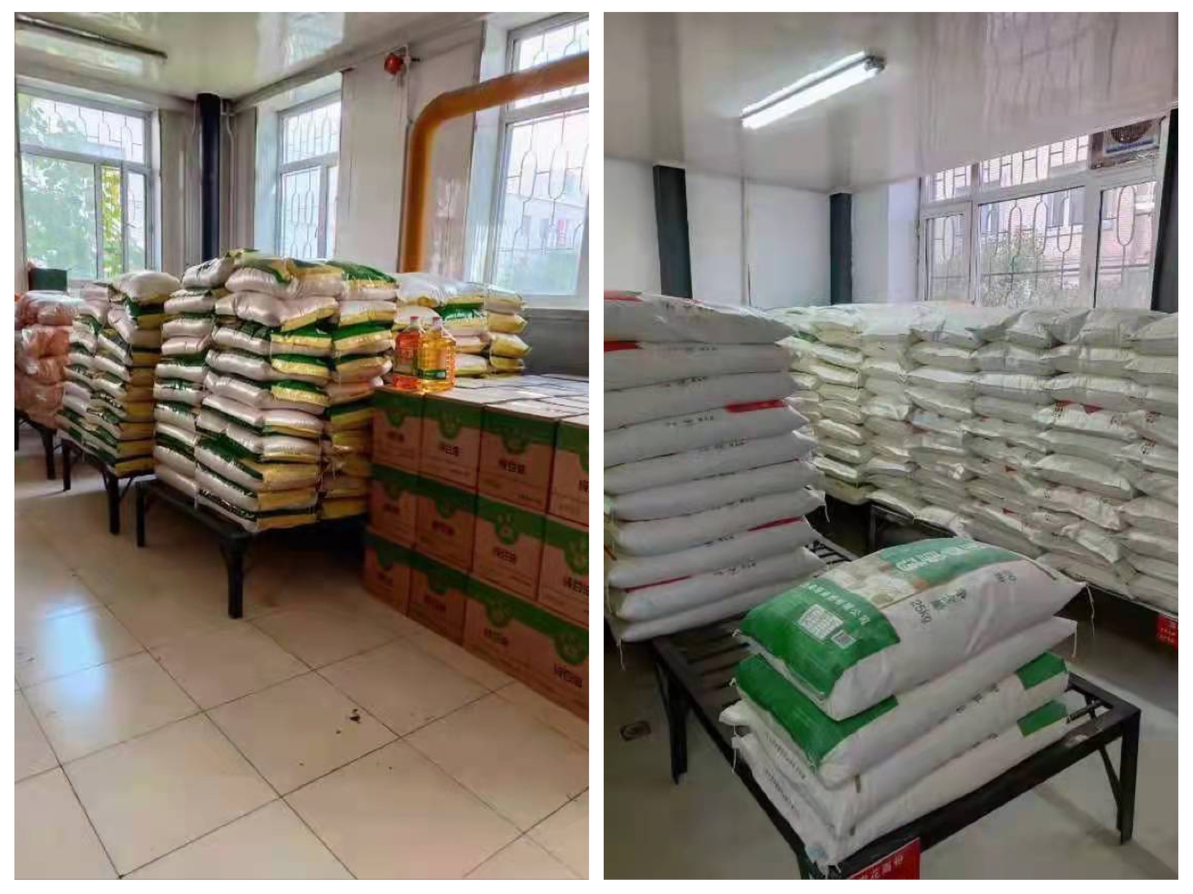 五、全力做好物资储备工作。自疫情以来,饮食管理科落实食堂原料储备,确保粮油等供应安全。食堂物资已储备大米4万斤、面2万斤、油700箱(共2800桶)、鸡胸肉1.2万斤、猪肉1500斤。