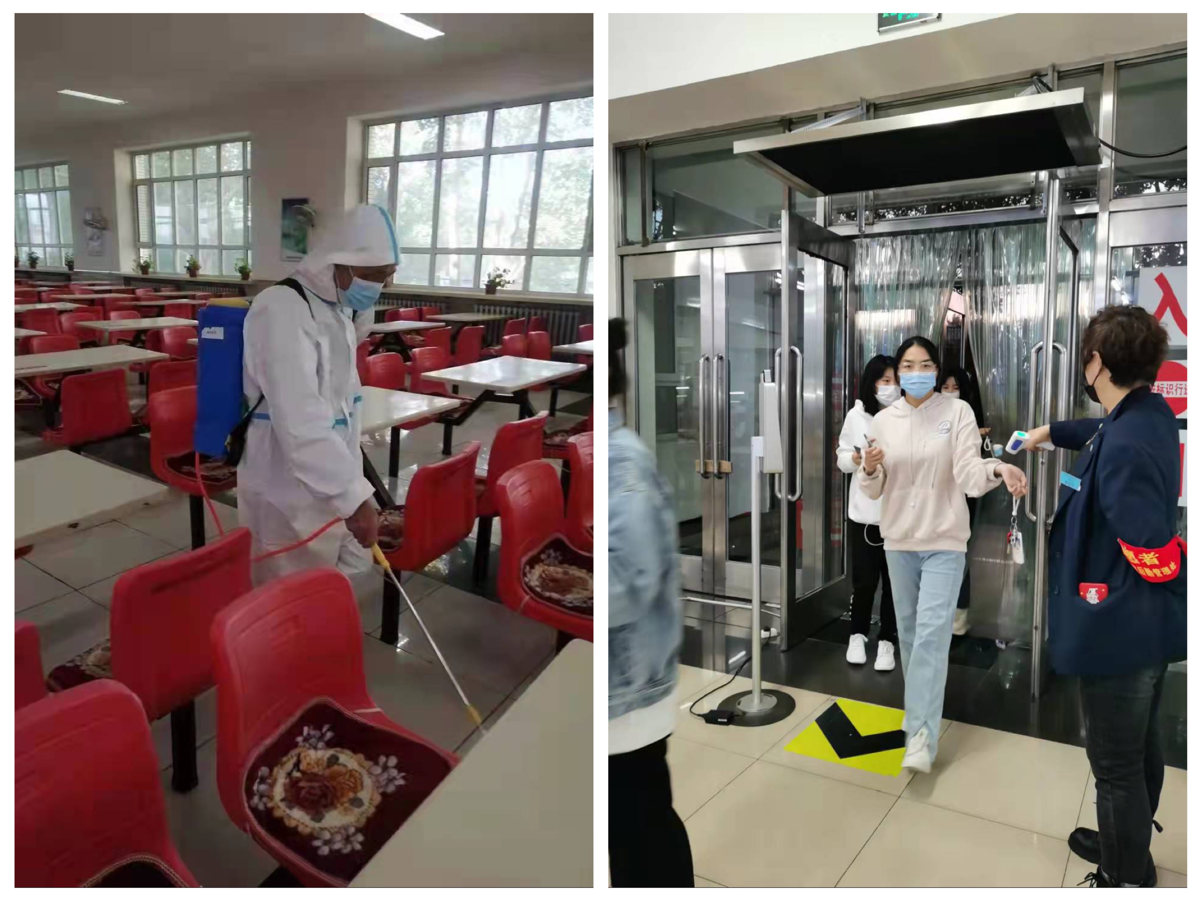 三、加强校园值班巡查与监督检查。第一时间启动应急预案,强化值班制度,加强门岗执勤力度,确保食堂所有工作人员严守纪律,认真履职。饮食管理科管理人员于每天早7:00-8:00、中午11:30-12:30、晚17:00-19:00三个高峰期下沉到各食堂门口站岗,督促学生进口出口单向行走,为每一位进入食堂的师生测量体温,发现问题及时上报和处置。自9月27日始,饮食管理科男员工轮流值班执宿,保证夜间食堂的正常运转及关业后的全面消杀,在疫情防控攻坚战中夯实工作责任。