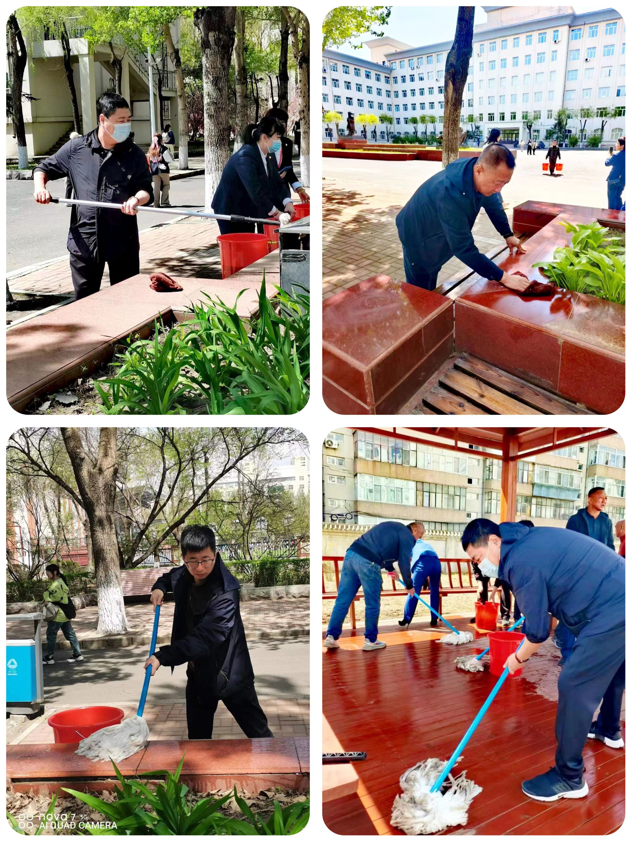 活动中,志愿者对主校区1号教学楼北侧雕塑广场内的雕塑及大理石花坛以及艺术校区省身亭、惠风亭等标志性景观进行了集中清理、冲洗和擦试。在王峰处长的带领下,后勤管理处与和信行物业的同志们分工合作,积极愉快的投入到志愿服务活动中,所有党员在劳动中都发扬了不怕脏、不怕累的精神,充分展示了全心为师生服务的热情。