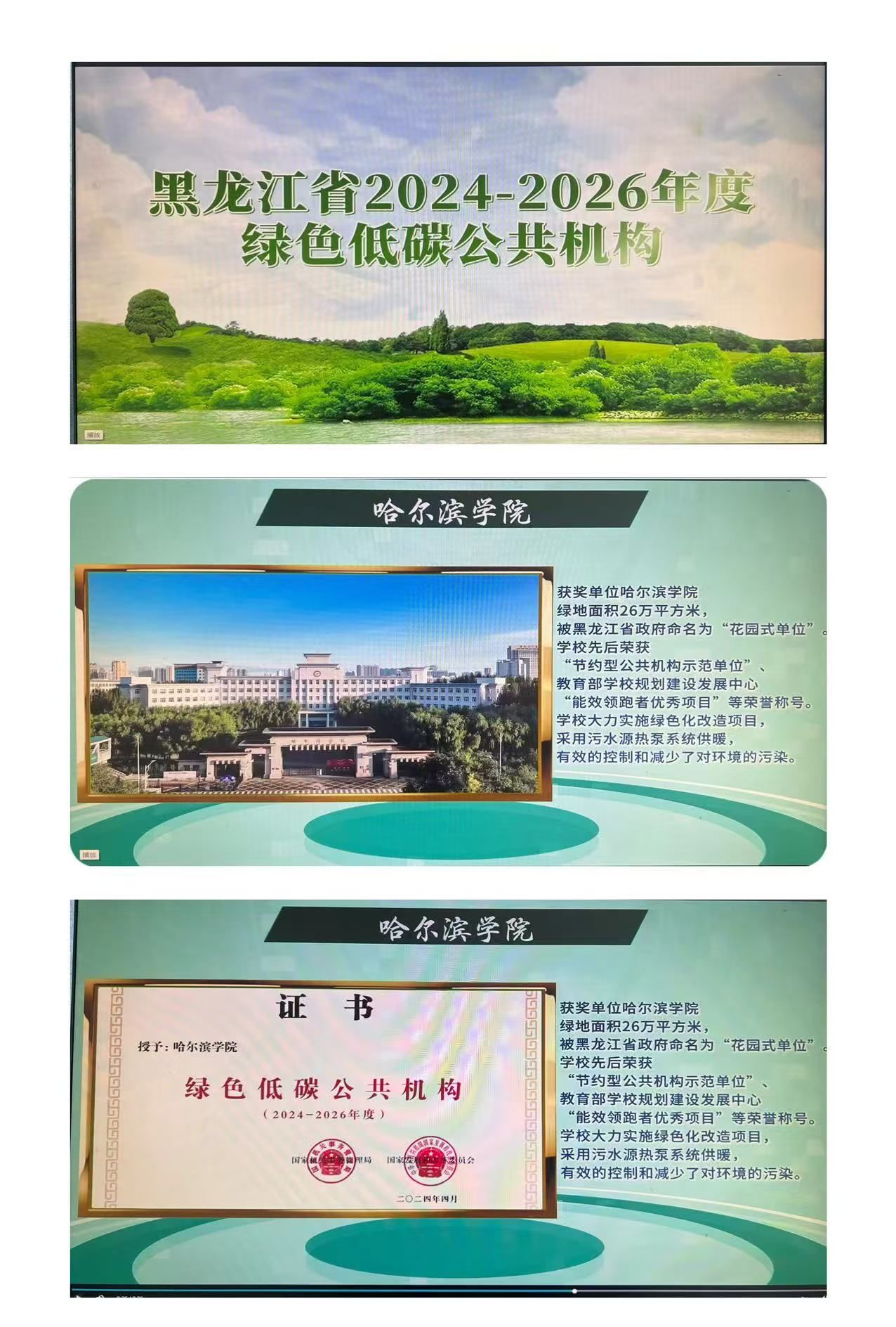 我校共有绿地面积26万平方米,被黑龙江省政府命名为“花园式单位”。先后荣获“节约型公共机构示范单位”、教育部学校规划建设发展中心“能效领跑者优秀项目”“全国公共机构能效领跑者”、黑龙江省首批“绿色学校”“全省节水型高校”等荣誉称号。大力实施绿色化改造项目,采用污水源热泵系统供暖,有效的控制和减少了对环境的污染,学生浴池改造项目采用了空气源热泵供热,节能降碳的同时又起到了积极的环保效果。