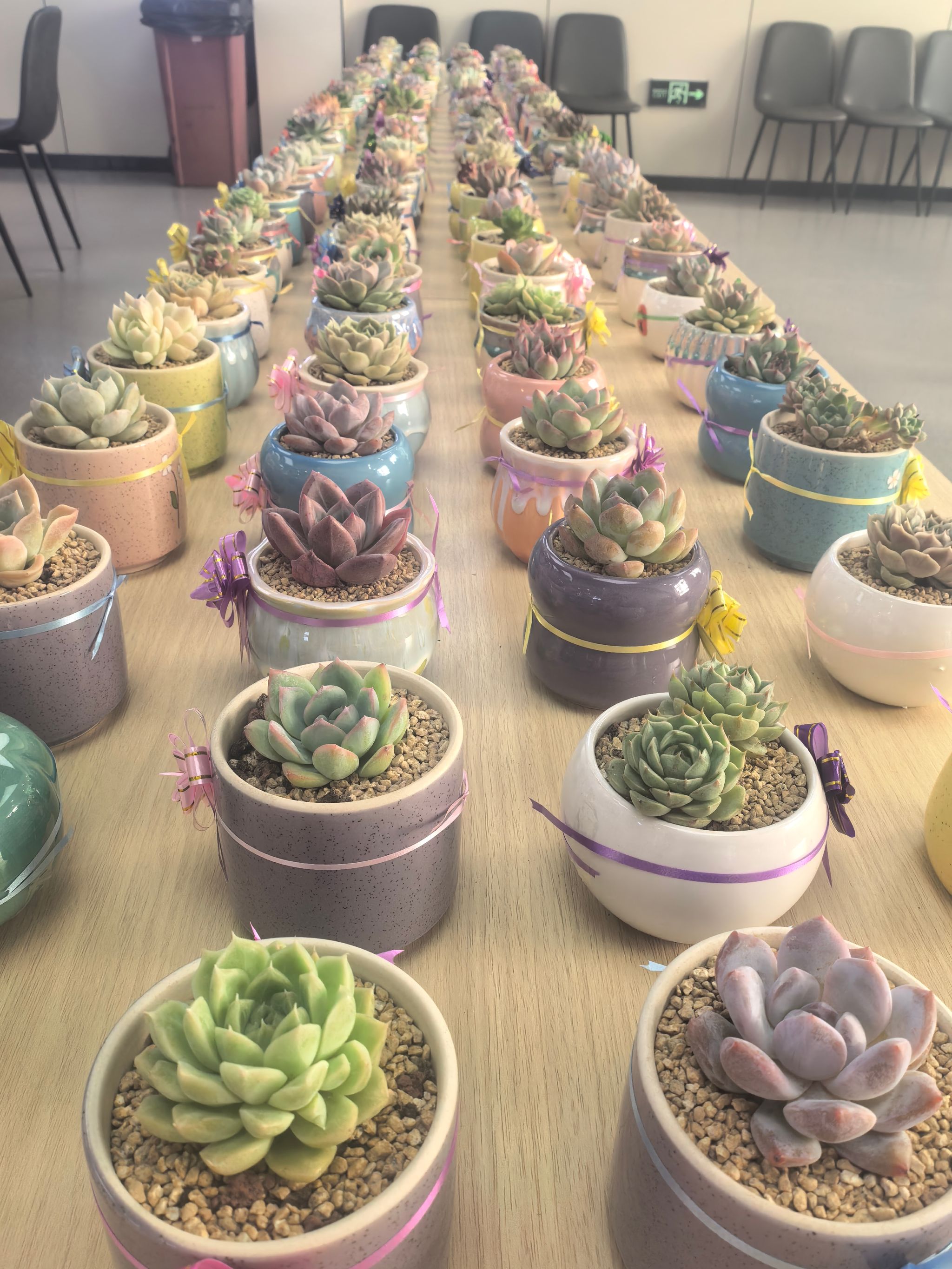 这些多肉植物不仅品种丰富,而且每盆都经过细心挑选与装扮,配上了小巧精致的小彩花,增添了几分趣味与雅致。学校工作人员介绍,选择多肉作为礼物,寓意深远:“多肉象征着坚韧不拔的生命力和顽强的生长精神,正如老师们默默奉献、不畏艰难的教育情怀;同时,它们易于养护的特点也提醒着老师们在忙碌的工作之余不忘照顾自己,享受生活的美好。”