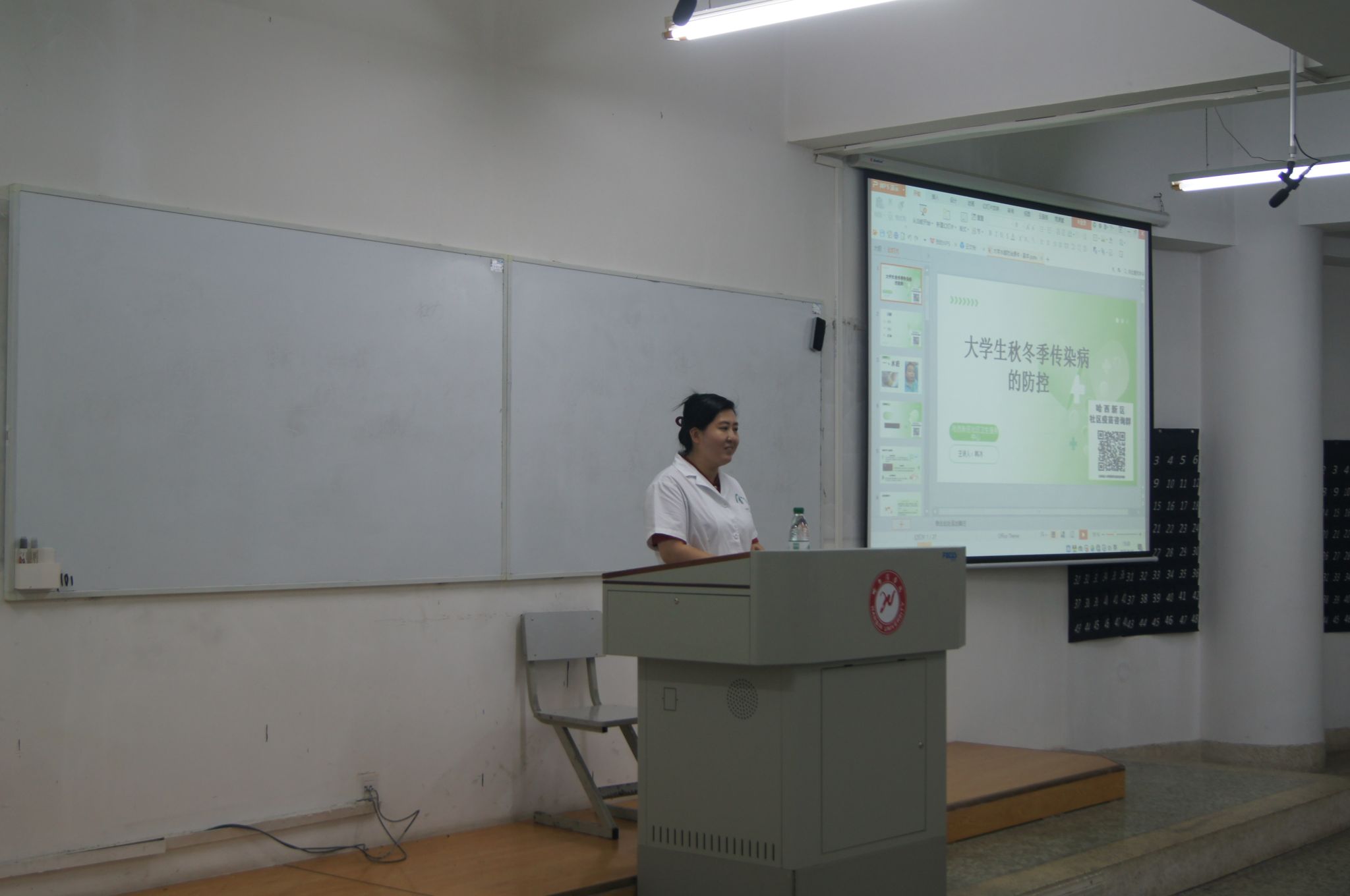 随着秋冬季的来临,各类呼吸道传染病进入高发季节。为提高广大师生的防病意识和自我保健能力,科学有效地预防流行性感冒、水痘、诺如病毒以及肺结核等常见传染病,9月19日下午,由哈尔滨学院卫生所举办的“秋冬季常见传染病预防知识讲座”在4号教学楼多媒体教室举行,本次活动数百名在校师生踊跃参与。