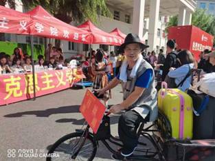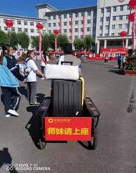 在这个新奇特的传媒年代,为给新生学子们一个不一样的入学仪式,增设“行政镖局”人力三轮车,为入学的师妹们免费搬运行李,引起了新生及家长们的驻足观看,成为孩子们的网红打卡地和关注的焦点。