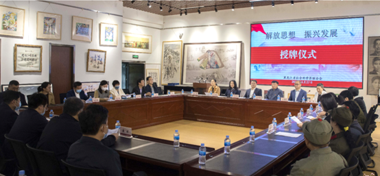 (郭鹏程/文)5月27日上午,省社科联在我校黑龙江四大精神文创展览馆举办了第四批社科普及基地授牌仪式暨“解放思想、振兴发展”研讨座谈会。省社科联副主席计世伟、刘亚辉,一级巡视员刘幸,二级巡视员胡小玉为基地代表授牌。我校校长、党委副书记于成学,副校长宋国利出席会议,学校相关职能部门负责人、艺术与设计学院相关人员及省社科联干部职工代表、各社科普及基地负责人近40人参加相关活动。