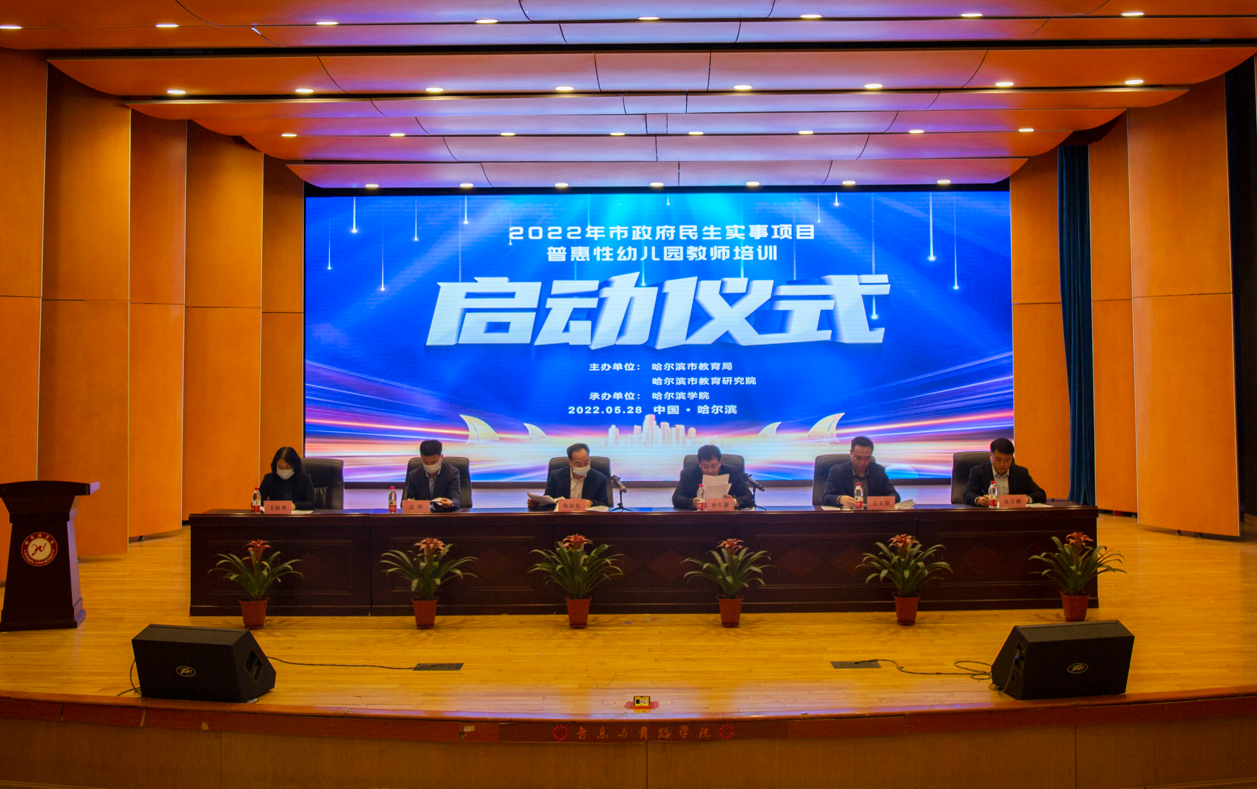 (文/王黎黎)5月28日上午,哈尔滨市政府民生实事项目“普惠性幼儿园教师培训”启动仪式在我校音乐与舞蹈学院音乐厅举行。市教育局二级巡视员杨海东、我校副校长孙红镱出席启动仪式。市教育局教师工作处处长孟辉、基础教育二处处长王玉春、副处长格日勒、市教育研究院学前教研部主任王桂秋、主城区教育局分管局长和部分普惠性幼儿园园长、教师及保育员代表参加本次活动。来自我市各区县普惠性幼儿园12000余名学员通过线上直播参加启动仪式和同步培训。