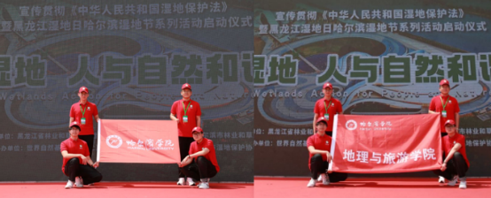 作为重要协办方,我校非常重视此次活动,组建了由党委宣传部、校团委、地理与旅游学院共同参与的会议筹备小组。在6月10日启动仪式上,由校团委黄婷婷、地理与旅游学院梁梦阳、王朝辉、孙娜四位老师带领精心选拔出来的40名志愿者提供了会议主持,全省志愿者代表发言,湿地宣教馆讲解,会议礼仪及会议志愿者等5项服务。