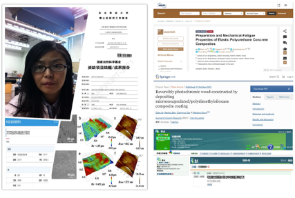 贾贞老师的科学研究方向是木材智能仿生装饰材料、功能性混凝土复合材料的研究。她围绕木材智能仿生装饰材料的性能可设计的研究思路,将具有不同特性的变色发光材料引入到木质基复合材料的性能设计中,通过纳米材料合成技术、微胶囊制备技术和自组装表面修饰技术的应用,在木材表面构筑具有变色发光性能的新材料,使木材表面仿生“变色龙环境变色”和“萤火虫自然发光”。为适应绿色建筑发展需求,将轻质、性能优异的快速补强材料聚氨酯水泥与温敏变色材料相结合,采用溶胶-凝胶法制备功能性混凝土复合材料。虽然疫情阻碍了人们的脚步,隔断了人们的交往,然而,贾贞老师根据承担的科研项目,合理的规划了任务安排,在居家隔离期间真正的做到了科研工作“不打烊”。