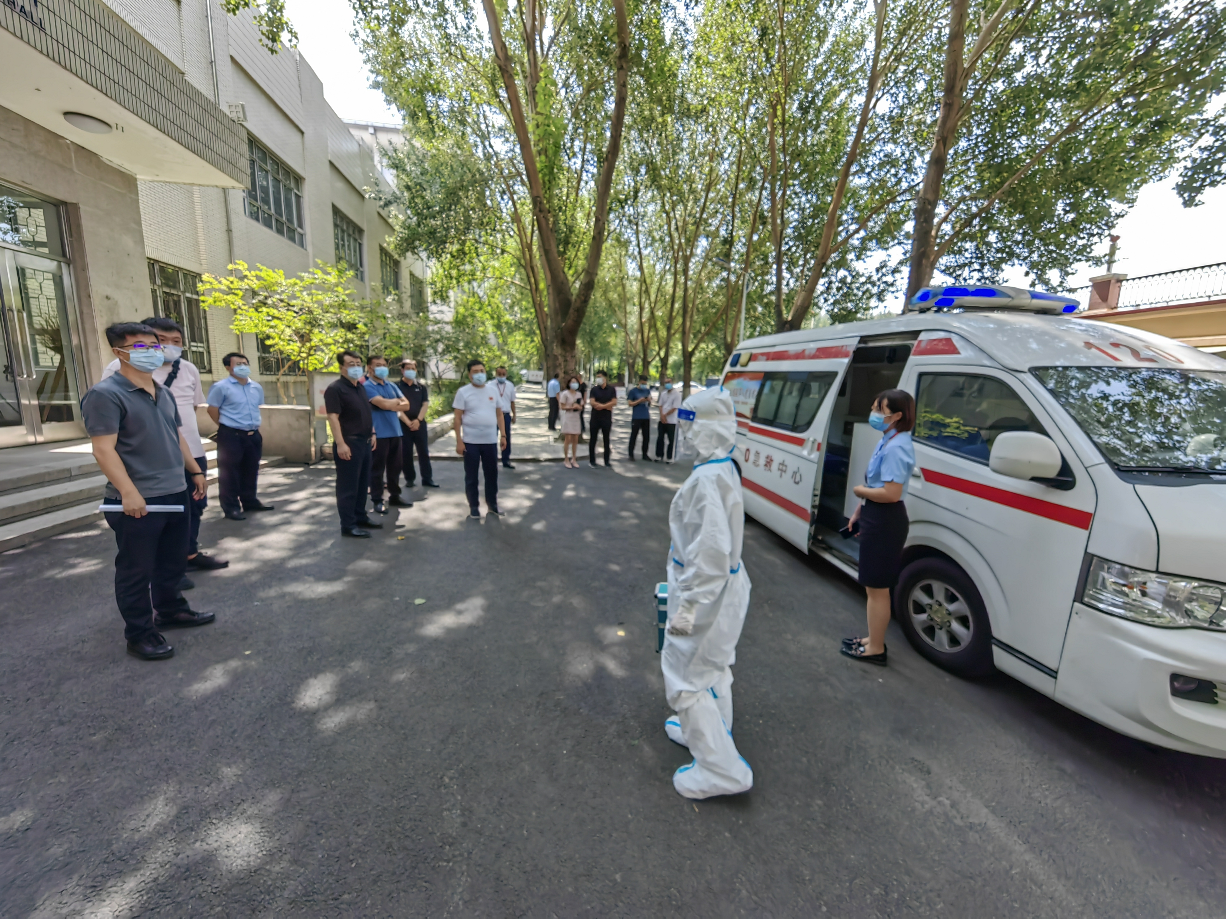 此次应急实战演练和风险隐患排查整治行动覆盖主校区大门门岗、食堂、临时隔离点、学生公寓等学生返校涉及的主要场所,全程模拟学生返校资格查验、核酸检测、订餐就餐等各个环节,对重点部位可能存在的风险隐患进行细致排查,并以返校当天发现体温异常学生为背景,推演了从体温检测、发现异常、情况报备、人员静置、转移转运、隔离管控等应急处置程序。