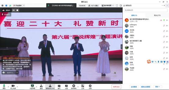 (文/孙英杰)在举国上下满怀喜悦迎接党的二十大胜利召开之际,学校成功举办“喜迎二十大、礼赞新时代”——第六届“图说辉煌”主题演讲比赛。在各二级学院初赛基础上,10月14日,决赛阶段的比赛以线上线下相结合的方式进行。校长、党委副书记于成学等校领导、各二级学院党委(党总支)班子成员、支部委员、全体辅导员、指导教师和师生党员共300余人线上参加观看。