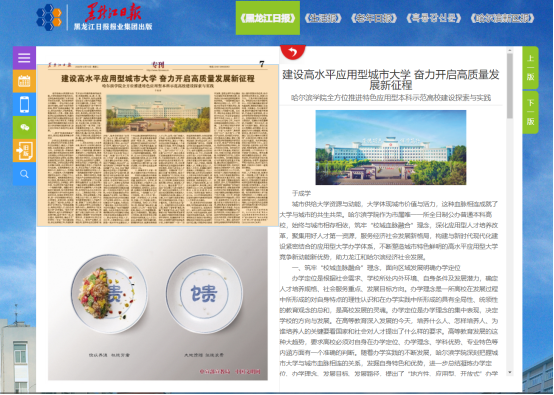 今年是省级特色应用型本科示范高校评估验收之年。在全党全国上下深入学习贯彻党的二十大精神之际,时近岁末,12月13日,《黑龙江日报》刊发于成学校长署名文章《建设高水平应用型城市大学 奋力开启高质量发展新征程——哈尔滨学院全方位推进特色应用型本科示范高校建设探索与实践》。