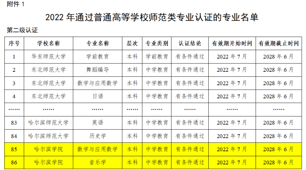 6月,小学教育专业入选国家级一流本科专业建设点,这是本校首个入选国家级一流本科专业建设点的专业。化学、地理信息科学、音乐学3个专业入选黑龙江省一流本科专业建设点。7月,数学与应用数学、音乐学两个专业顺利通过教育部普通高等学校师范类专业二级认证。学校现有国家级一流专业建设点1个,省级一流专业建设点12个,小学教育、数学与应用数学、音乐学三个专业通过师范类专业二级认证。
