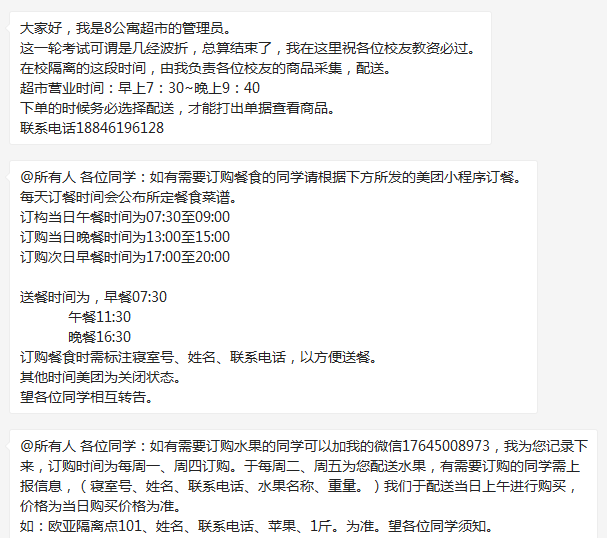 针对因受疫情影响滞留哈市、参考教资有住校需求的26名学生,开放第八学生公寓住宿。组织辅导员、心理咨询师采取“人盯人”“一对一”管理方式,密切关注学生身心健康,同时后勤管理处、网络中心加强后勤餐食、日常消杀、网络畅通保障。学校保卫处积极协调快递公司人员,针对部分学生先期邮寄到学校的物品,在征求本人同意的前提下,代为签收、妥善保管;如有收货地址改签需求,在提供准确收件地址的情况下,联系快递人员及时改签改派。