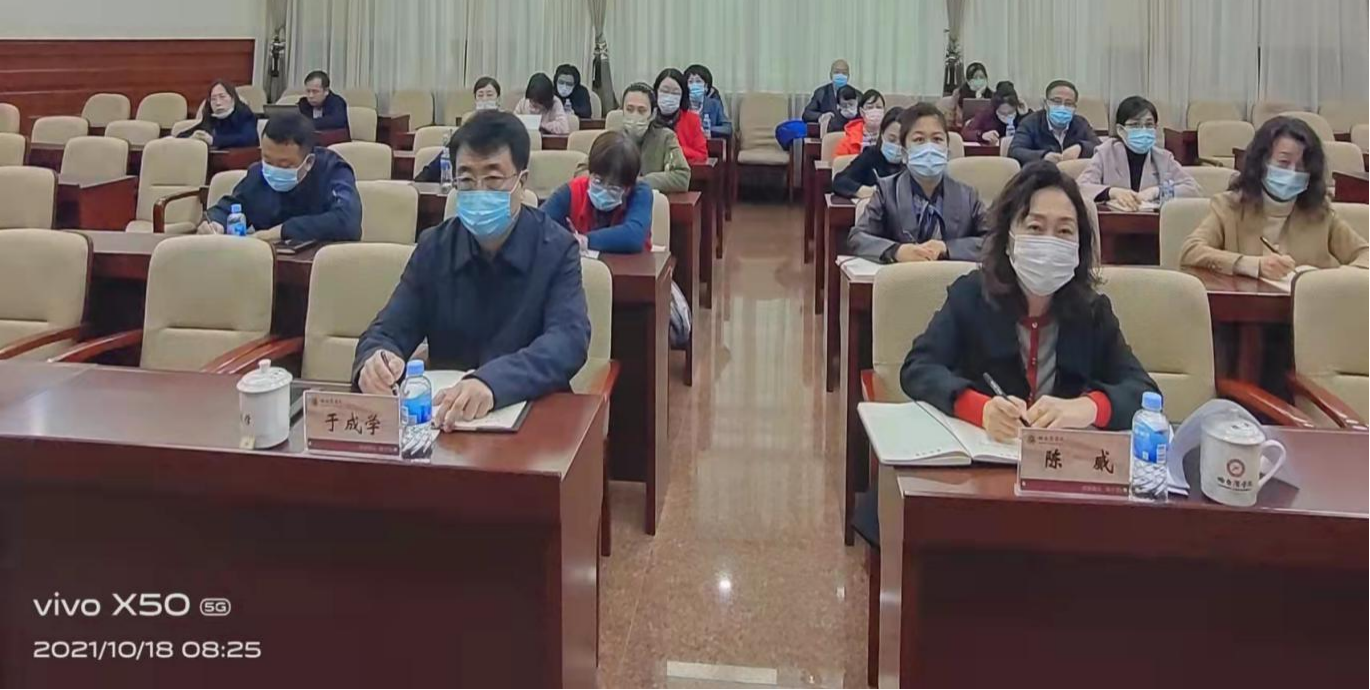 2021年10月18日上午8:00—10:00,我校以腾讯会议形式收看了教育厅组织召开的“黑龙江省普通本科高校‘习近平新时代中国特色社会主义思想进课程教材’和‘中国共产党历史’专题课进课程工作推进会”视频工作会议。学校校长于成学、校工会主席陈威、教务处处长、马克思主义学院院长及全体无课教师在学校主会场收看会议,其他学院领导组织教师在分会场收看会议。