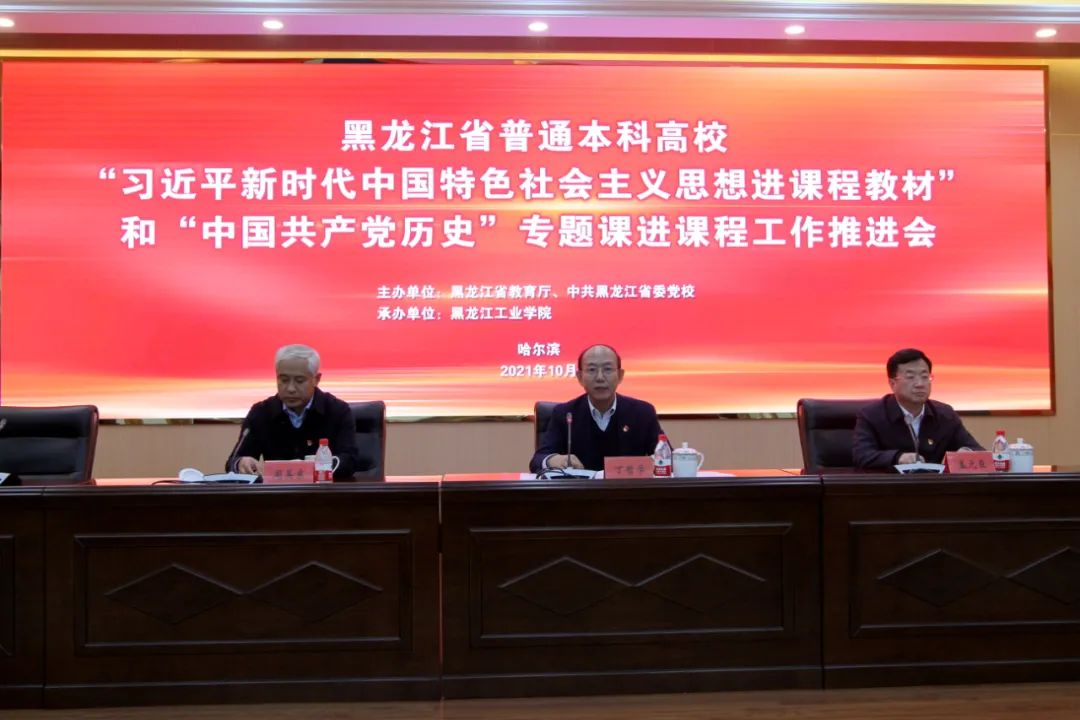 会议对在全省本科高校推进习近平新时代中国特色社会主义思想进课程教材和“中国共产党历史”专题课进课程即“双进”工作进行了全面部署。为依托省委党校、黑龙江工业学院和相关高校成立的“黑龙江省高校习近平新时代中国特色社会主义思想课程思政教学研究中心”和“黑龙江省高校中国共产党历史课程思政教学研究中心”举行了揭牌仪式。省委党校周英东教授、中国人民大学宋学勤教授做专题辅导报告。
