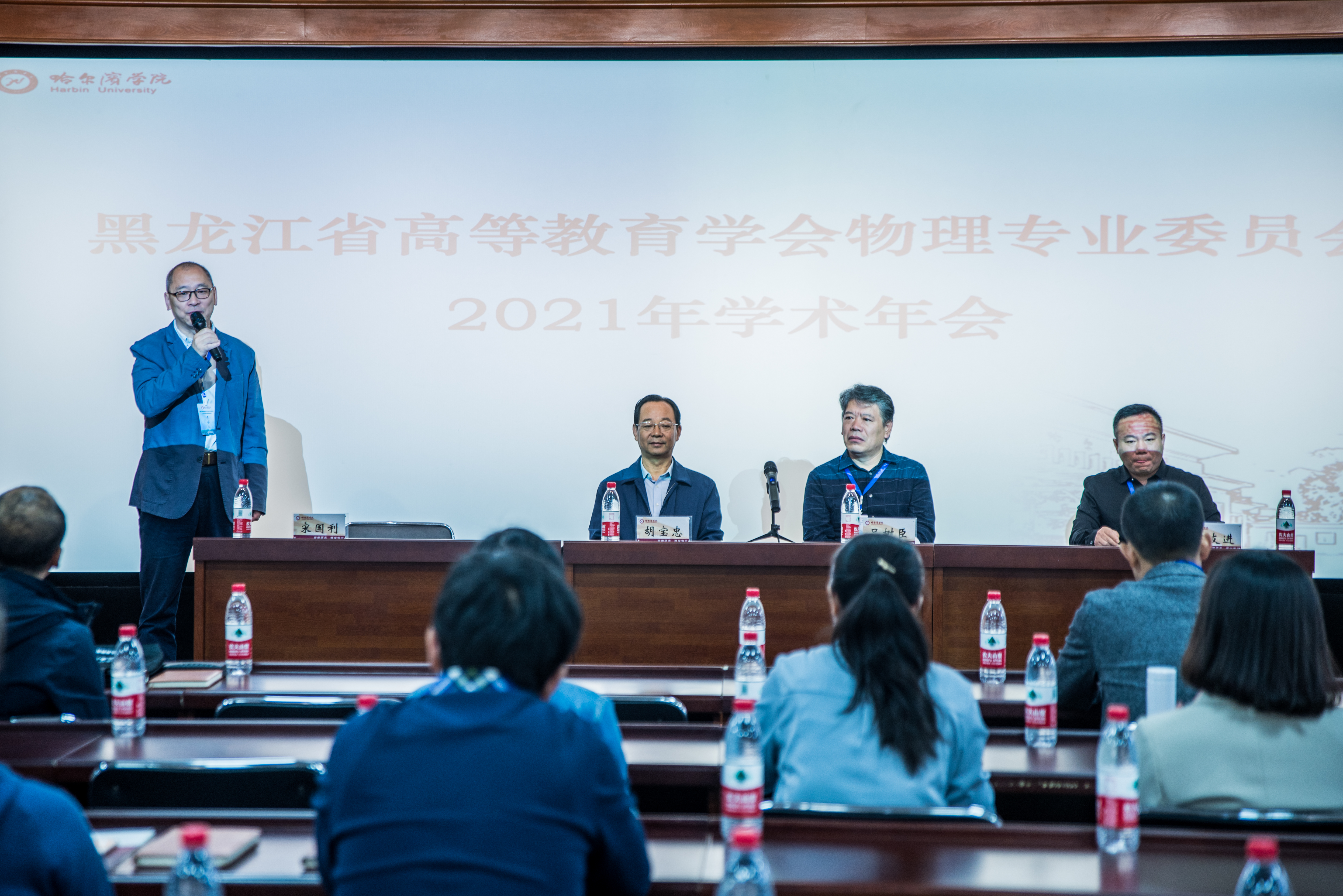 黑龙江省高教学会物理专业委员会副主任、哈尔滨学院副校长宋国利教授代表学校致欢迎辞,黑龙江省高教学会物理专业委员会主任、哈尔滨师范大学吕树臣教授致开幕词。大会开幕式由牡丹江师范学院物理与电子工程学院院长郑友进教授主持。