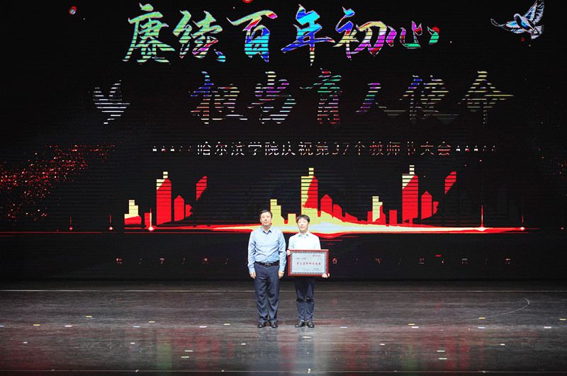 表彰大会上,校领导为获得哈尔滨学院第四届师德师风先进个人、优秀教师,哈尔滨学院第四届教学贡献奖、科研贡献奖、管理贡献奖,哈尔滨学院第四届教学突出贡献奖、科研突出贡献奖获得者颁发荣誉证书。受表彰的老师们满怀幸福喜悦的心情,在全场热烈的掌声中上台领奖。哈尔滨芭蕾舞团、音乐与舞蹈学院、大学生合唱团为教师献上了精彩的文艺节目,表达诚挚的节日祝福。
