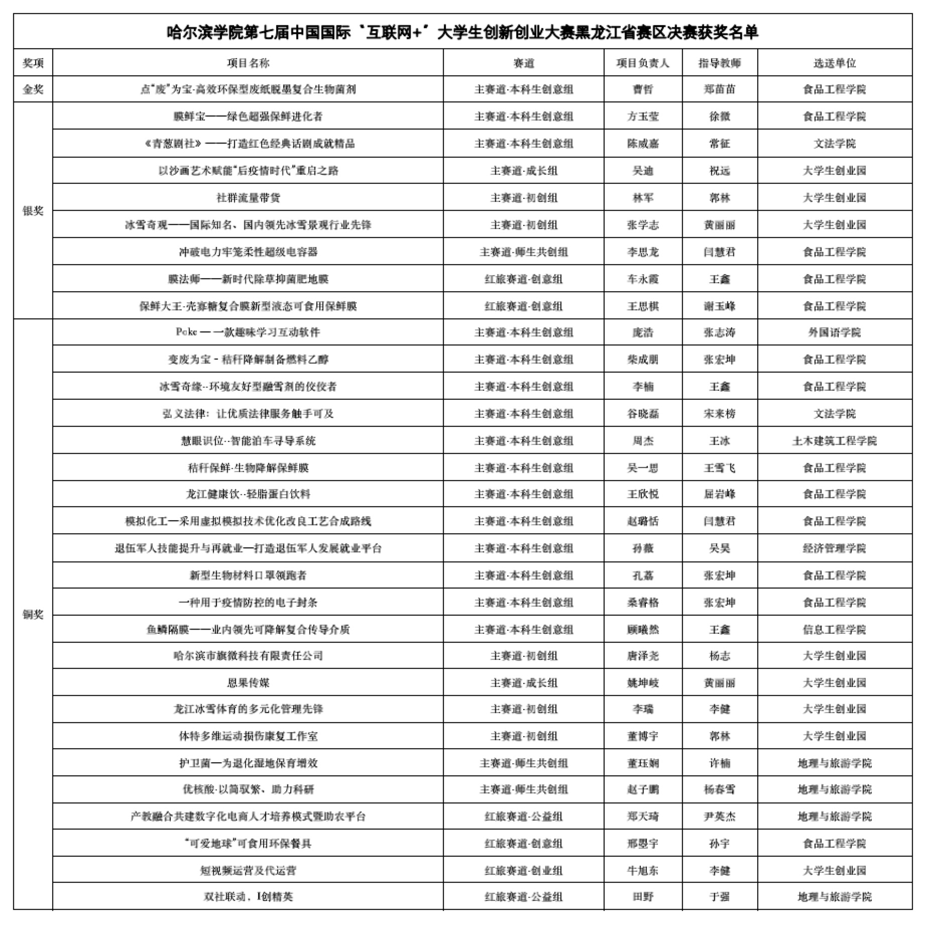 8月6日,第七届中国国际“互联网+”大学生创新创业大赛黑龙江省赛区总决赛圆满落幕。来自全省66所本科高校的1030项作品进入总决赛角逐。经过激烈比拼,我校参赛团队再次荣获金奖1项,银奖8项,铜奖22项,奖牌总数31项,参赛人数和获奖人数均获历年新高,排名位于全省本科高校前列。