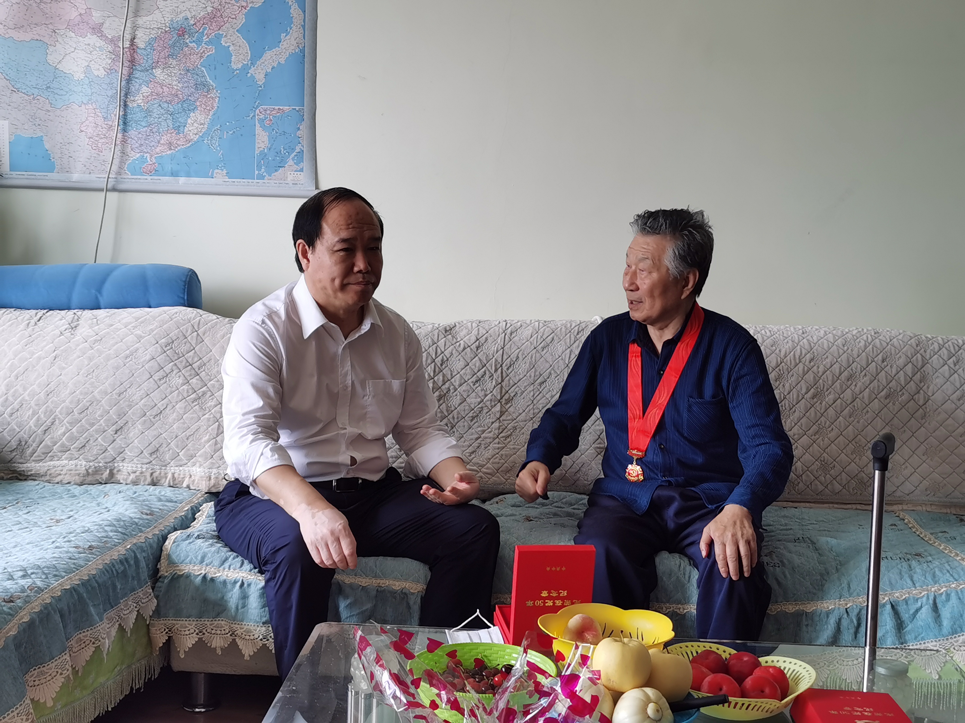 受校领导委托,组织部、离退休工作处在“七一”前对荣获“光荣在岗50年”纪念章的老党员逐一进行走访慰问。