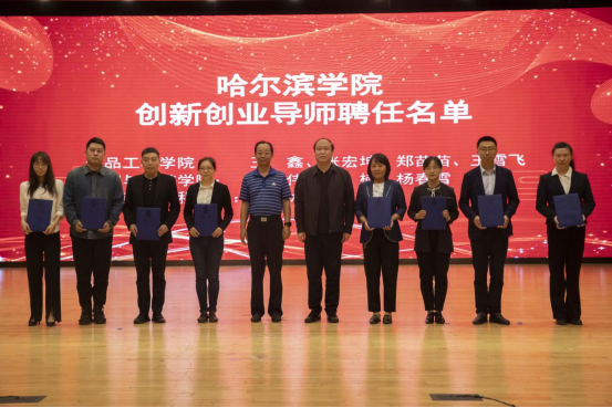 启动仪式上,校党委书记冯延平、校长胡宝忠为教师颁发创新创业导师聘书