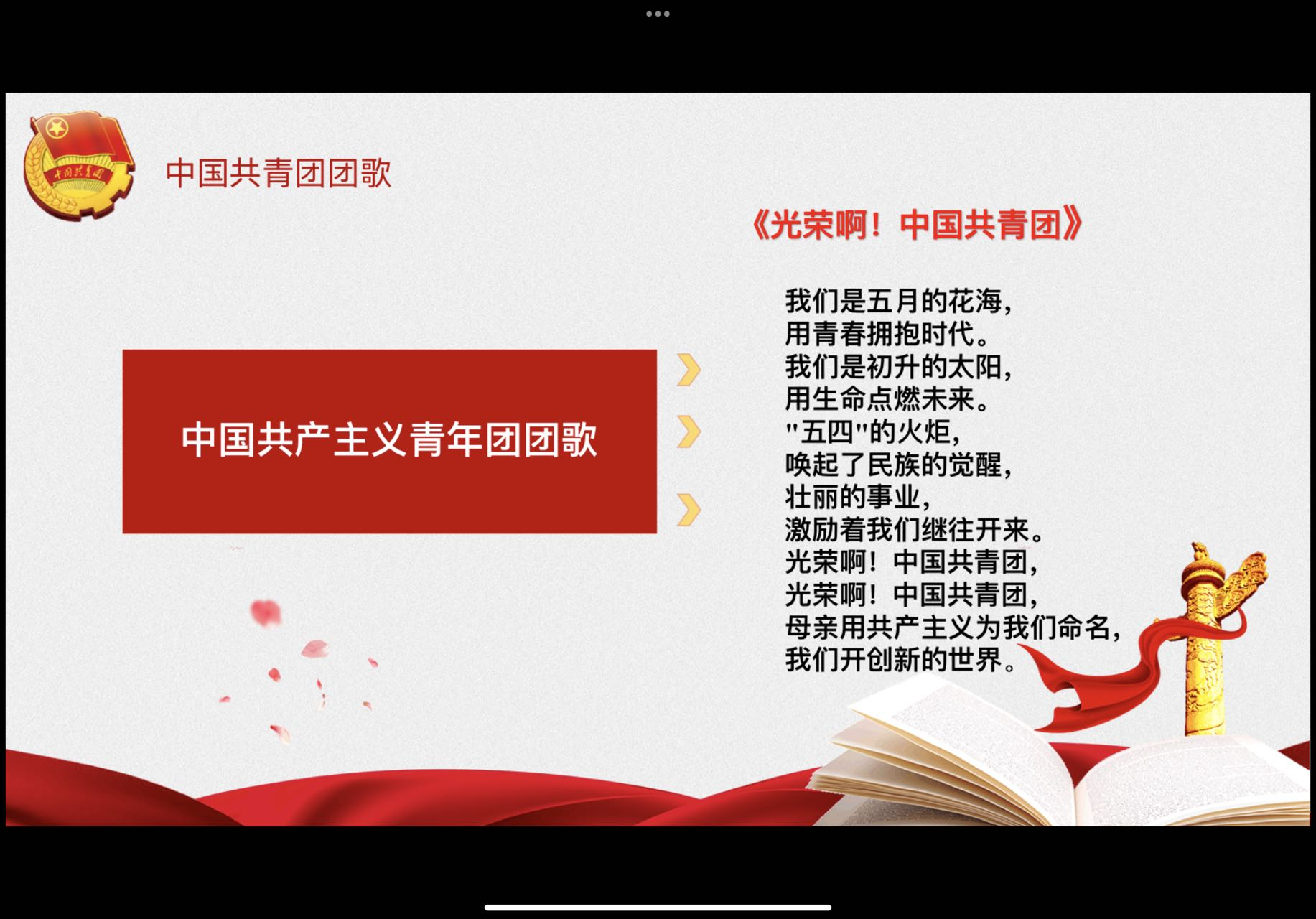 艺术设计学院分团委于4月12日开展“绽放青春之声,献礼建团百年”线上主题团课,团课由分团委书记孙家宝主讲,本次主题团课的流程主要分为三个部分,首先是介绍此次团会开展的目的和意义,调动团员青年们的积极性。第二项是为大家介绍本次团课的重点内容。最后,对本次线上会议做出总结,通过团会中的交流和探讨旨在提高团员青年们的思想理论水平和政治素质,使他们进一步坚定理想信念,成为新时代的青春担当。