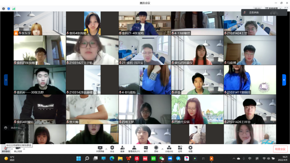 4月11日,食品工程学院分团委开展“绽放青春之声,献礼建团百年”主题团日活动,分团委书记谷慧鹏老师带领同学们共同回顾了共青团一百周年的光辉历程,展望新形势下共青团的发展前景,加强团员青年对团的发展历史的了解,深化团员爱国主义教育和革命传统教育,使同学们深刻感悟真理与实践力量,坚定鲜明的政治立场,强化责任担当,不忘初心使命。团会过程中邀请学生代表讲述优秀团员故事,围绕党领导青年运动的光辉历程展开讨论交流,同学们不仅分享了自己对青春、奋斗的体会,还纷纷表示发挥团员的示范性作用,积极弘扬时代精神,做奋发有为的新时代青年。