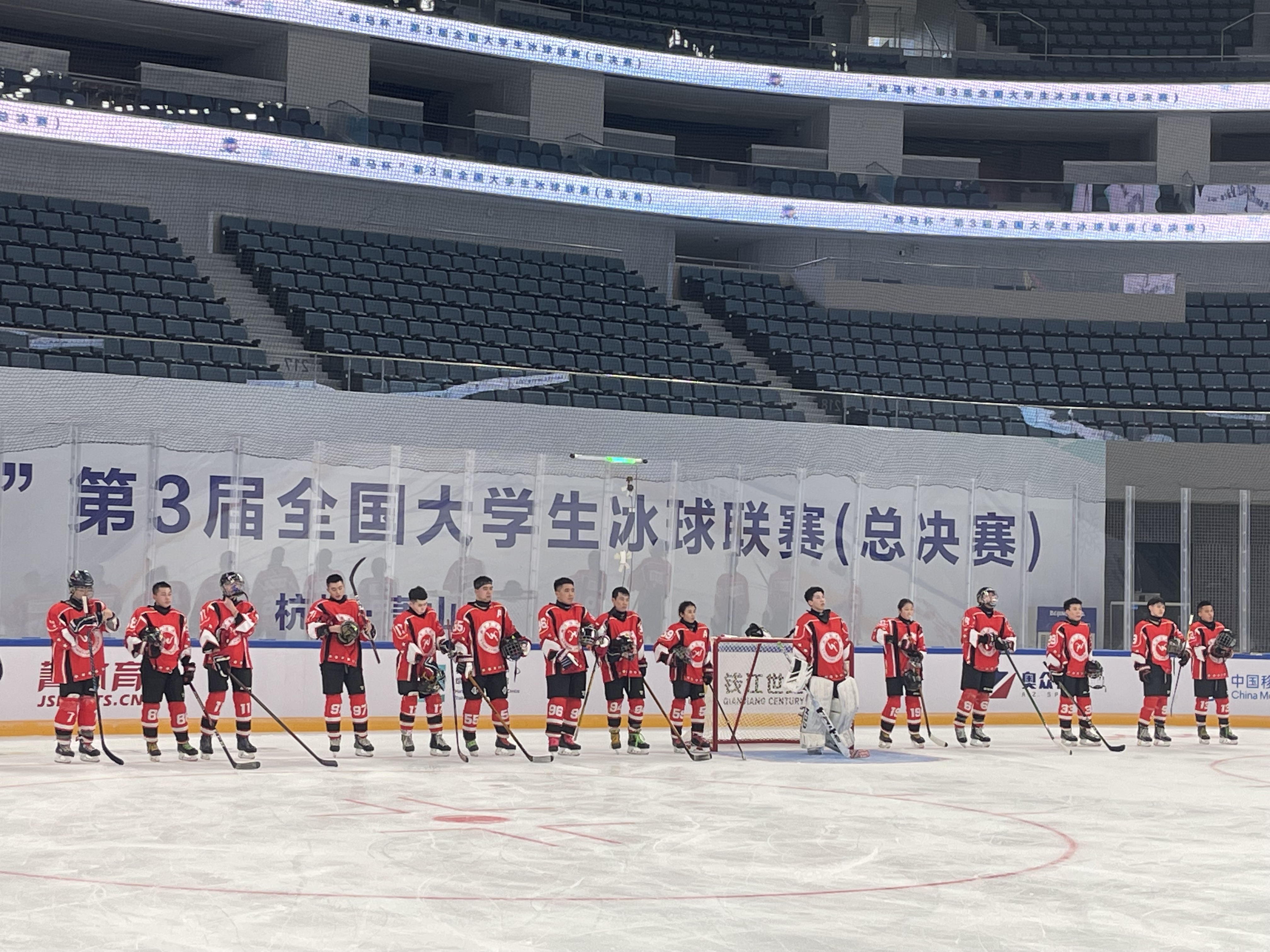 2022年3月11至15日,中国大学生体育协会主办的“战马杯”第三届全国大学生冰球联赛(总决赛)在杭州市举办,本次比赛共有来自全国12所高校的500多名运动员参赛,其中不乏北大、清华、人大、哈工大、北体大和哈体院等多所体育强校参加,我校体育学院冰球队第二次冰上出征,获得B组亚军。