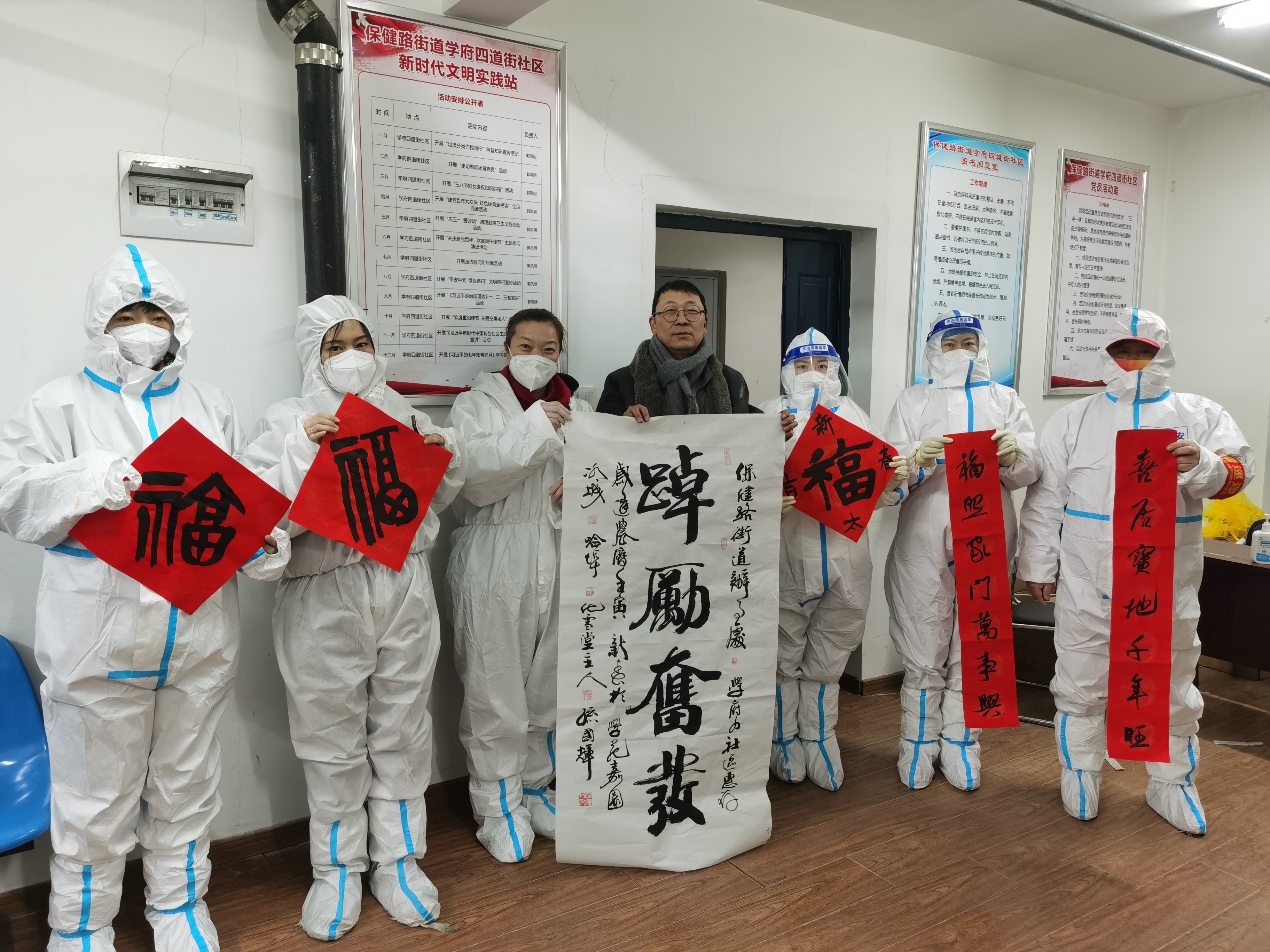 壬寅虎年新春即将到来,为进一步弘扬传统文化,倡导文明健康过春节,2022年1月24日,由学校党委宣传部主办的“书原创春联,迎虎年新春——幸福生活幸福年文化惠民活动”在保健路街道学苑嘉园小区启动。校工会首先组织二级工会,广泛征集教职工自撰和喜爱的春联,教职工针对不同的专业岗位和工作性质积极撰写了“思有得学有成智慧盈华府,读万卷行万里身心皆自由”“辛丑学史明理延河寻宝塔,壬寅增信崇德天山拓新疆”等优秀联语内容。为避免聚集,党委宣传部会同艺术与设计学院组织书法家在黑龙江四大精神文创展览馆提前进行创作,将作品在离退休老干部活动室展出。同时,还邀请书法家孙国辉、付伟刚现场为哈尔滨全民核酸检测防疫工作人员、志愿者挥毫,用独特的书法艺术传统文化给百姓献上美好祝福,愿祖国国泰民安,人民安居乐业。